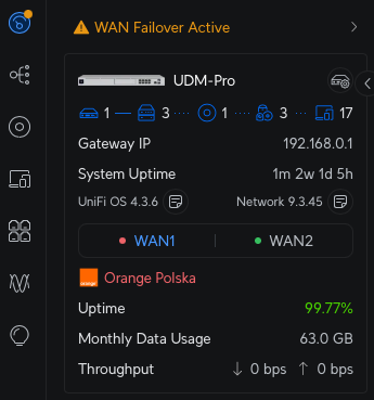 siedzę na nocce, orange stwierdziło że musi zrobić konserwację. A ja dostaję tylko powiadomienie z unifi że wan1 nie działa i przełączyło na zapasowe łącze, wszystko działa nieprzerwanie